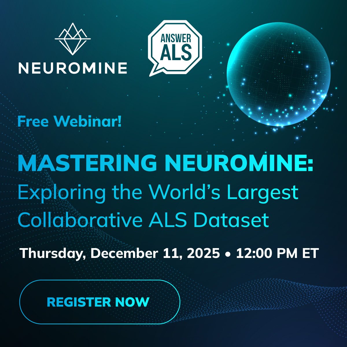 Answer ALS is dedicated to accelerating the discovery of treatments and cures for amyotrophic lateral sclerosis (ALS) by uniting a global community of researchers, patients, and advocates in an open, collaborative quest for answers. Through our innovative Neuromine platform, we harness multi-omics data from diverse participants to help uncover biomarkers, identify risk factors, and drive therapeutic breakthroughs. By sharing data transparently, fostering inclusive partnerships, and empowering those affected by ALS, we aim to transform the fight against this devastating disease.